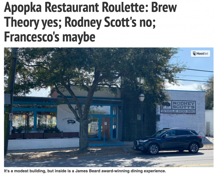 Apopka Restaurant Roulette: Brew Theory yes; Rodney Scott’s no; Francesco’s maybe