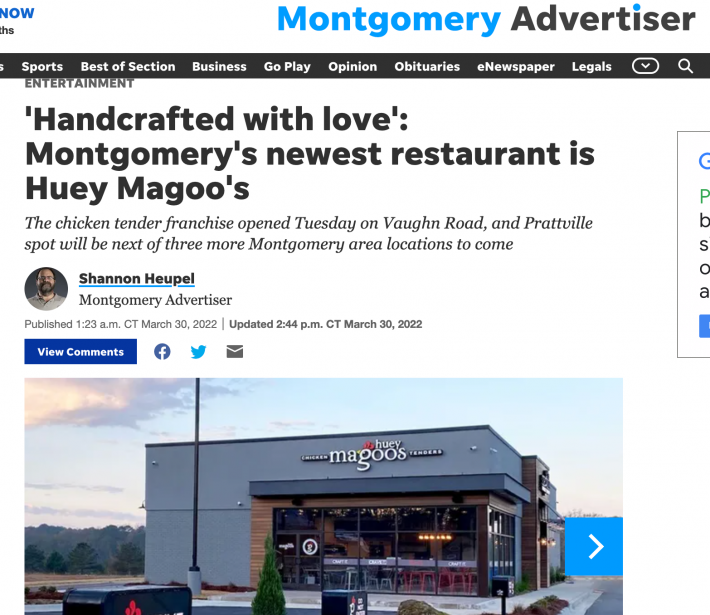 ‘Handcrafted with love’: Montgomery’s newest restaurant is Huey Magoo’s The chicken tender franchise opened Tuesday on Vaughn Road, and Prattville spot will be next of three more Montgomery area locations to come