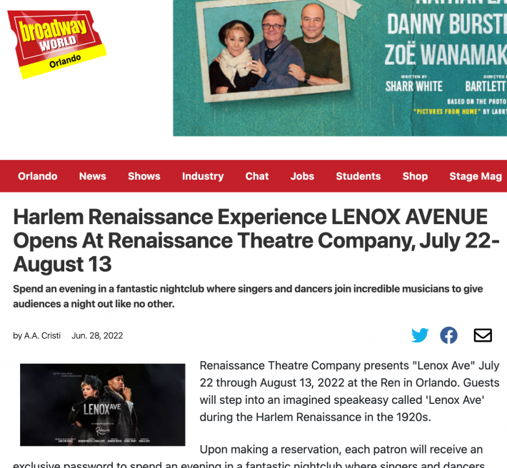 Harlem Renaissance Experience LENOX AVENUE Opens At Renaissance Theatre Company, July 22-August 13