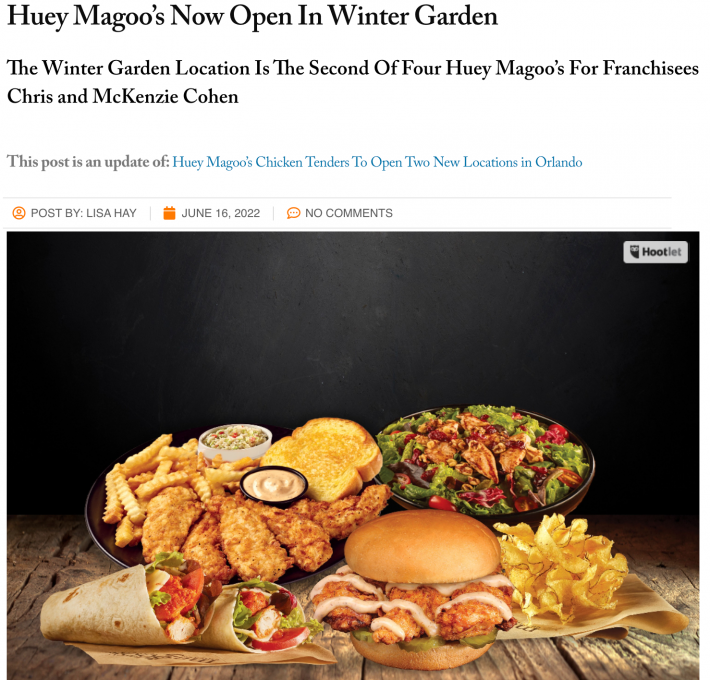 Huey Magoo’s Now Open In Winter Garden The Winter Garden Location Is The Second Of Four Huey Magoo’s For Franchisees Chris and McKenzie Cohen