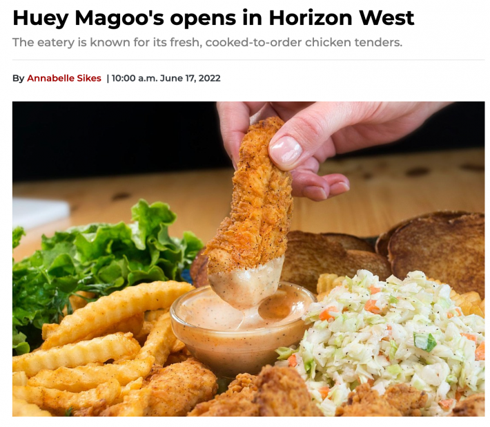 Huey Magoo’s opens in Horizon West The eatery is known for its fresh, cooked-to-order chicken tenders.