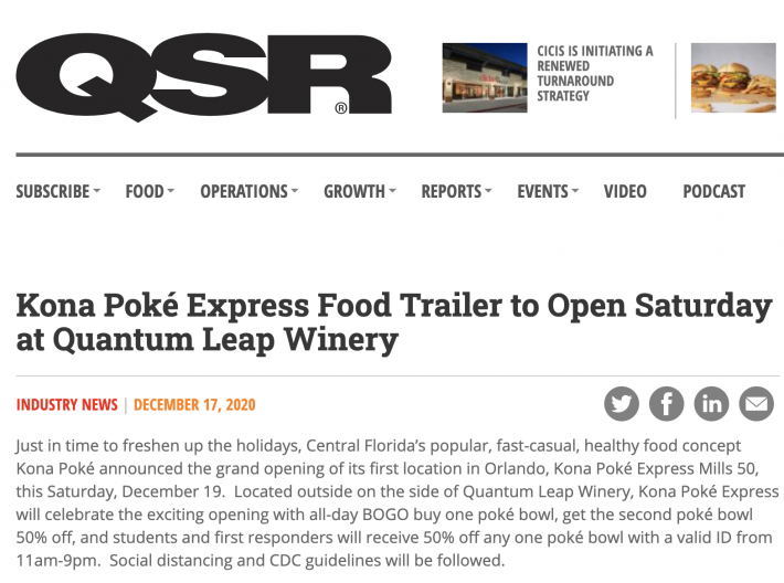 Just in time to freshen up the holidays, Central Florida’s popular, fast-casual, healthy food concept Kona Poké announced the grand opening of its first location in Orlando, Kona Poké Express Mills 50, this Saturday, December 19.