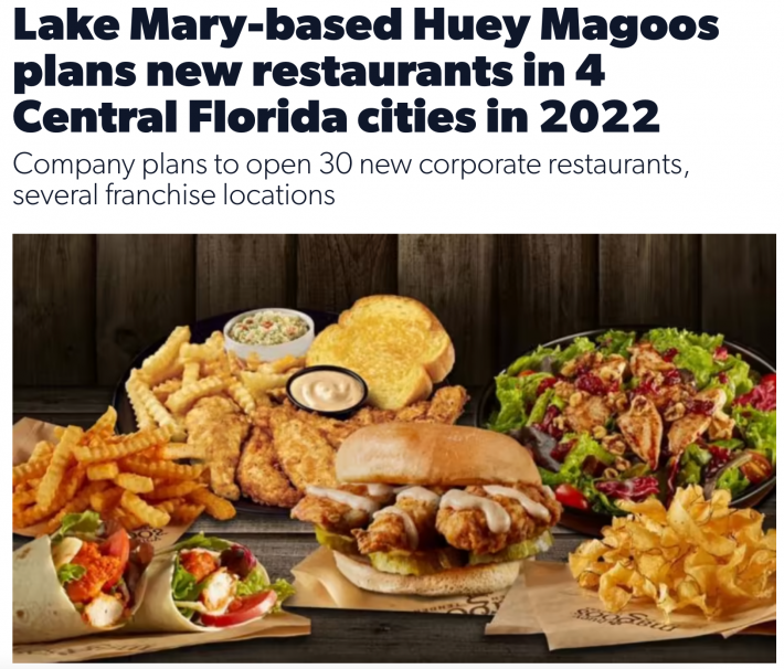 Lake Mary-based Huey Magoos plans new restaurants in 4 Central Florida cities in 2022 Company plans to open 30 new corporate restaurants, several franchise locations
