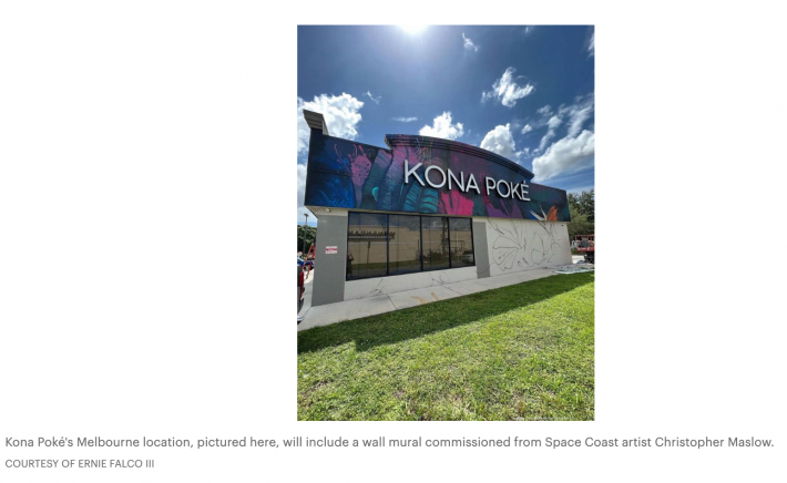 Kona Poké’s Melbourne location, pictured here, will include a wall mural commissioned from Space Coast artist Christopher Maslow.