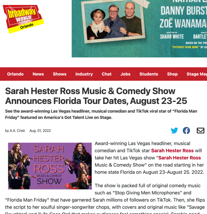 Sarah Hester Ross Music & Comedy Show Announces Florida Tour Dates, August 23-25