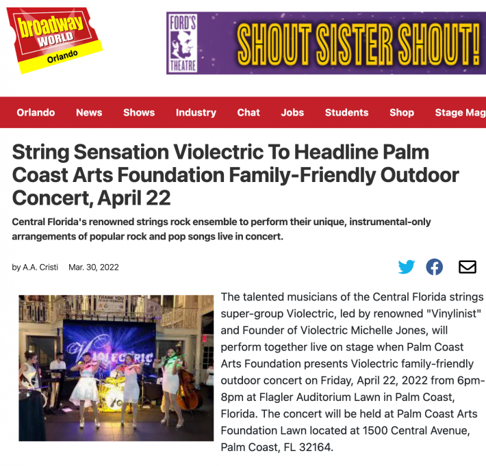 String Sensation Violectric To Headline Palm Coast Arts Foundation Family-Friendly Outdoor Concert, April 22